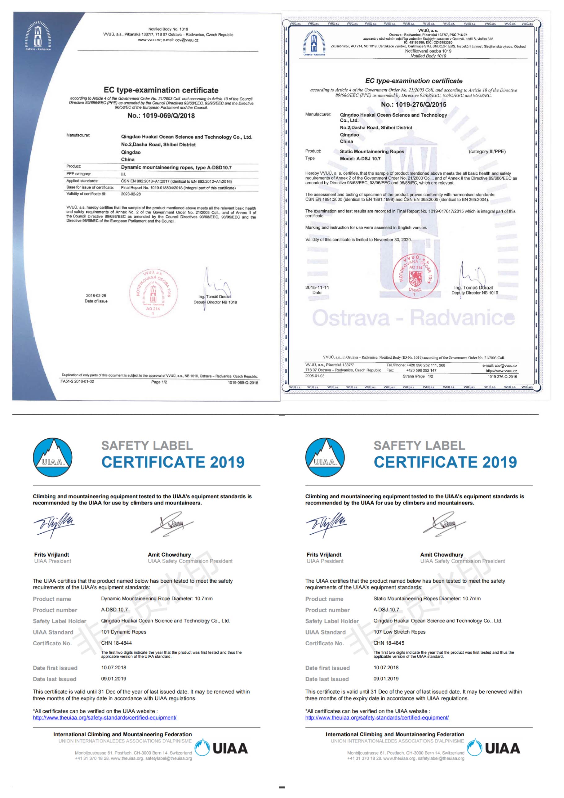 公司研發的“蛟龍”動力繩、靜力繩為全國首家通過CE、UIAA雙認證。
