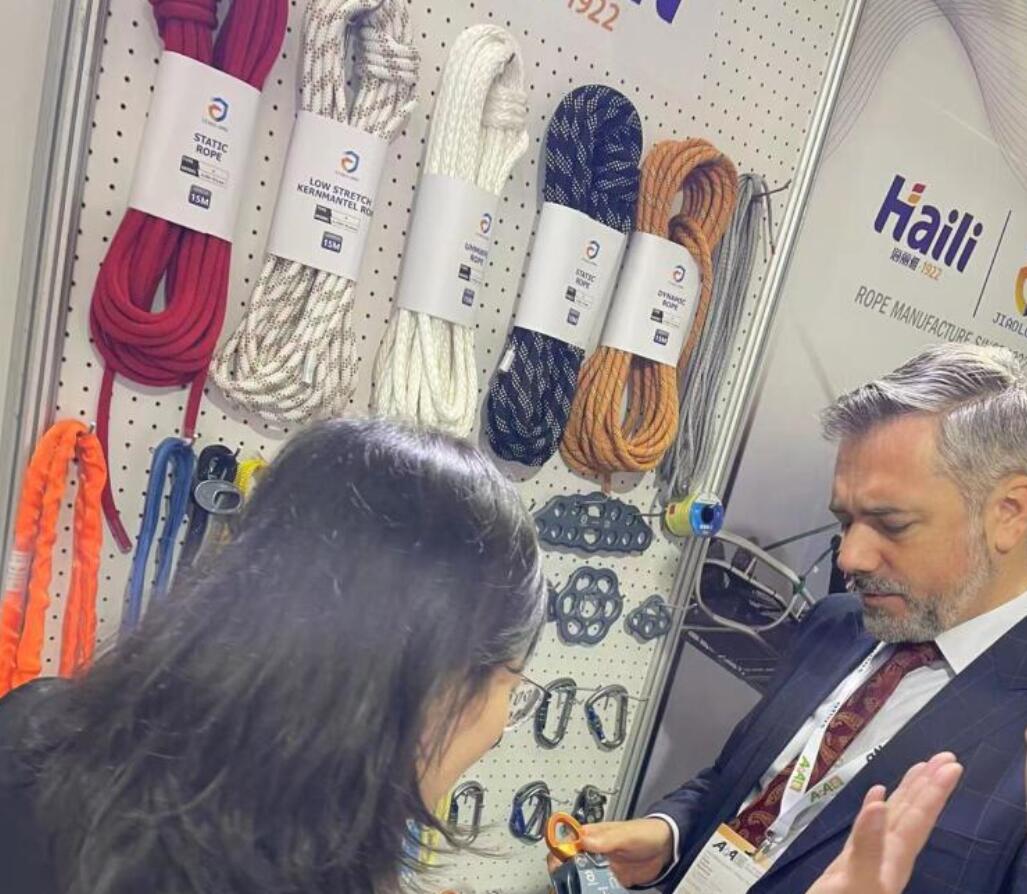 青島海麗雅集團作為中國最早的繩纜研發生產企業已有百年歷史,集團緊跟國家戰略部署,深入研發“深海”、“深空”及安全應急領域的特種繩纜裝備,創下繩纜界“四個第一”——即“中國深度”、“中國強度”、“中國精度”、“中國溫度”。作為“中國繩王”的海麗雅集團,在此次展會上展示了企業最新研發的“蛟龍”繩索救援繩纜及裝備,可以用于多種使用場景,滿足了國際客戶的多種使用訴求,獲得了到場客戶的多筆意向性訂單。