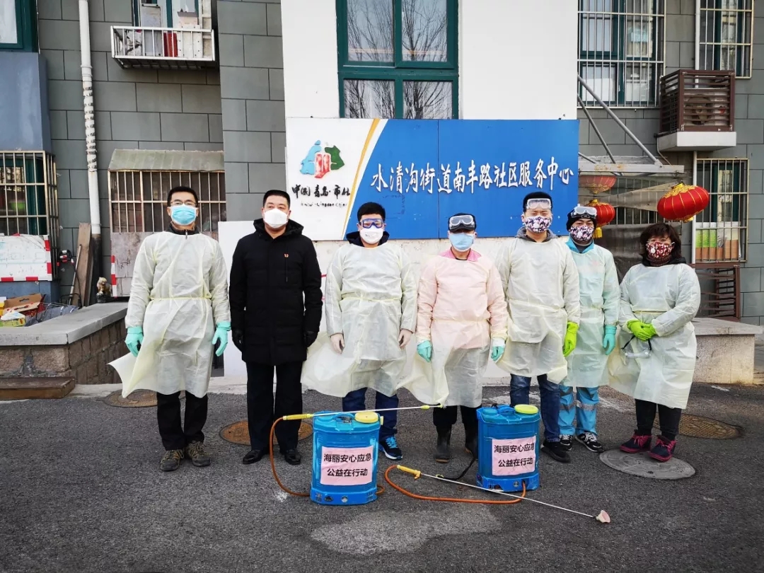 國(guó)有難,召必回,回必戰(zhàn)。在大家的積極響應(yīng)下,當(dāng)天成立了由鄭文嬌、王琳、劉曉龍、曲風(fēng)文、孫世福、宋夢(mèng)茹、劉栩江、徐繼華、劉剛、孫睿、王帥、韓慶偉、劉建光、遲延平、唐翠麗、王雨辰、徐連龍等17人組成的海麗安心防疫志愿隊(duì),為市北區(qū)的街道社區(qū)進(jìn)行義務(wù)消殺。這些同事接到任務(wù)后,有從外地老家匆忙趕回來(lái)的,有到處借消殺用具的,有搜集護(hù)具用品的,有全程參與消殺工作的,有身兼數(shù)職的,唯獨(dú)沒有任何怨言。