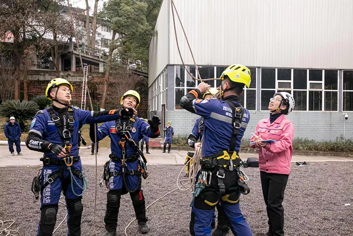 1月3日,由集團技術中心副主任謝丹帶隊到峨眉山景區消防救援大隊,與CRAR就救援繩纜技術及裝備進行交流學習。