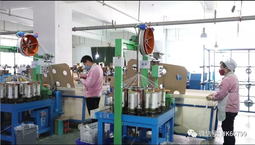 在特種繩纜的生產車間內,機器轟鳴聲此起彼伏,這里已恢復了往日繁忙的生產景象,工人們正有條不紊地在各自生產線上作業。與此同時,公司響應國家號召,主動放棄生產國外繩纜訂單的機會,以共抗疫情為己任,將部分原有生產特種繩纜的設備改裝成為生產口罩耳帶和防護服系帶的設備,組織員工加班加點生產,現在每天的產量約40萬米,可滿足60萬個口罩的制作需求。
