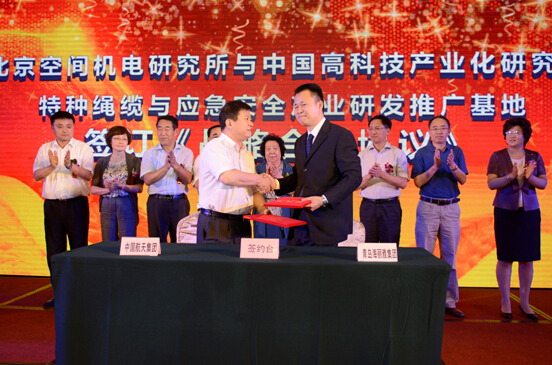 論壇上,還宣布了海麗雅集團與清華大學科技研發中心共同研發的中國第三代高層樓宇緩降器試制成功,同時中國航天科技集團中國空間技術研究院508所與基地簽訂《戰略合作協議》。