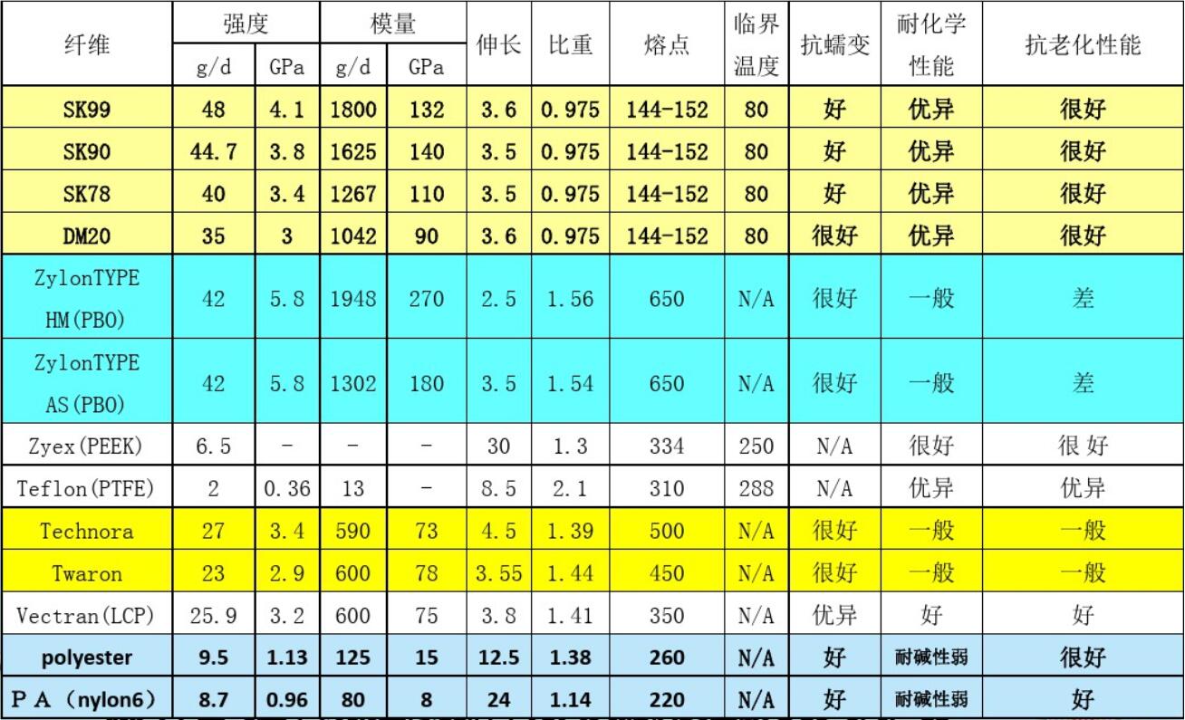 1、國外繩纜企業(yè)使用的HMPE纖維的性能指標(biāo)