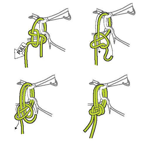 使用這個(gè)登山繩結(jié),以快速和輕松地綁一個(gè)意大利掛接。