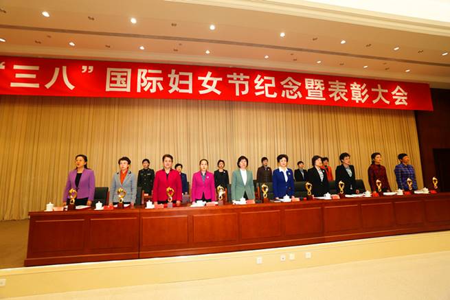 當天,中共中央政治局委員、國務(wù)院副總理劉延?xùn)|,中共中央政治局委員、國家副主席李源潮會見受表彰的先進代表。全國人大常委會副委員長、全國婦聯(lián)主席沈躍躍出席會議并發(fā)表講話。全國婦聯(lián)黨組書記、副主席、書記處第一書記宋秀巖主持大會。