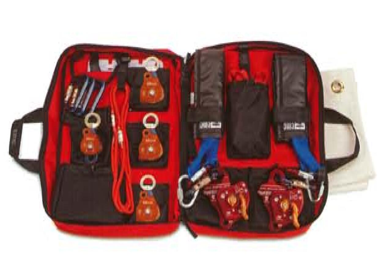 器材包不僅僅用于儲存器材,方便攜帶,更重要的是用于器材的組裝,保證器材時刻處于可裝配的待命狀態。舉個例子,錨裝備可以放一個包里,主繩和附屬硬件放一個包里,保護系統的繩索和器材放第三個包里。換句話說組裝一個包內的裝備,就可以組裝成主繩或保護繩系統。其目的就是救援所需的裝備都能第一時間到達現場,然后所有器材都能進行快速組裝。