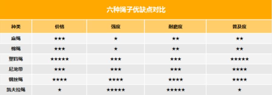 日常生活中會接觸到很多種類的繩子,貨車使用的繩子由早期的麻繩、棉繩發展到現在的塑料繩、尼龍繩。在卡車上使用的繩子種類很多,不同材質編織出來的繩子所具有的屬性也不一樣。大家可以通過下面的表格了解幾種常見繩子的優缺點,在選購繩子的時候要著重考慮繩子的強度、耐磨能力。
