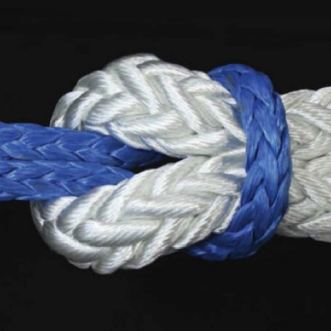 眼對眼拼接這種化纖繩的連接方式需要將兩個扣眼拼接在一起,形成永久性連接。如果要對繩纜進行更換,則需要重新將扣眼進行連接。這種連接方式在繩纜尺寸近似時強度效率最高,并且這種連接方式比雙合結強度損失小。